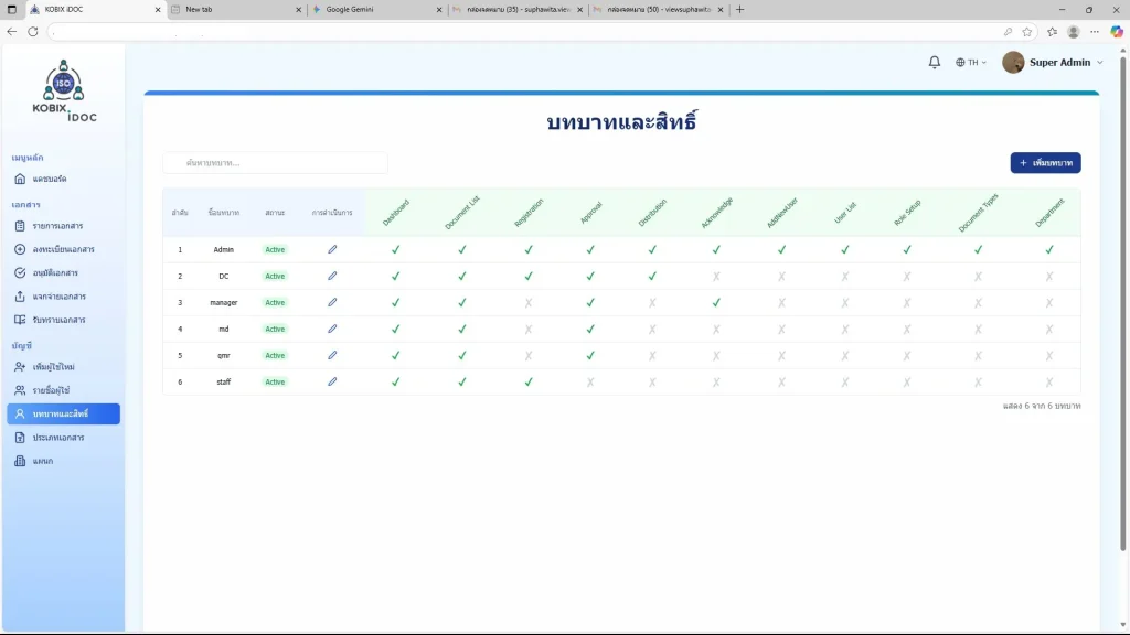 Admin กำหนดสิทธิ์การใช้งานของผู้ใช้แต่ละบทบาทได้อย่างยืดหยุ่น